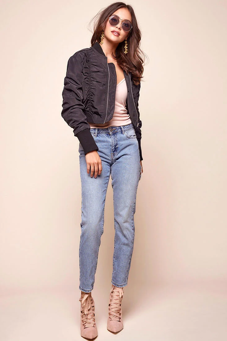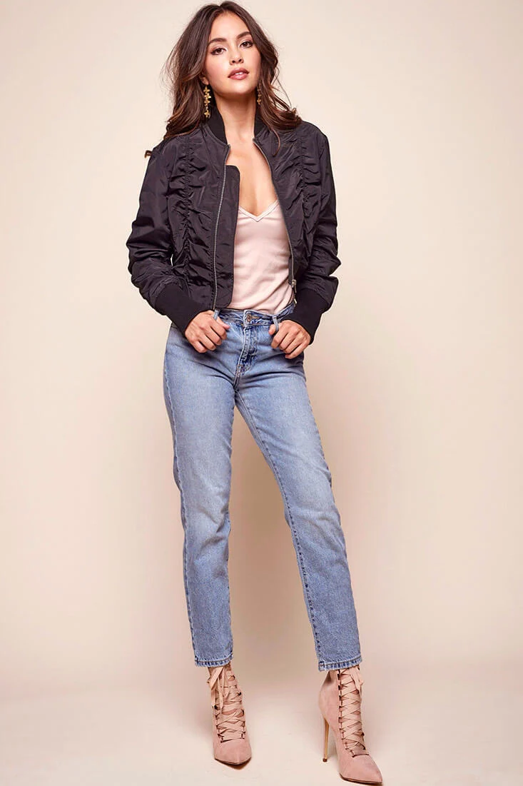 Rachel Floral Bomber Jacket Black