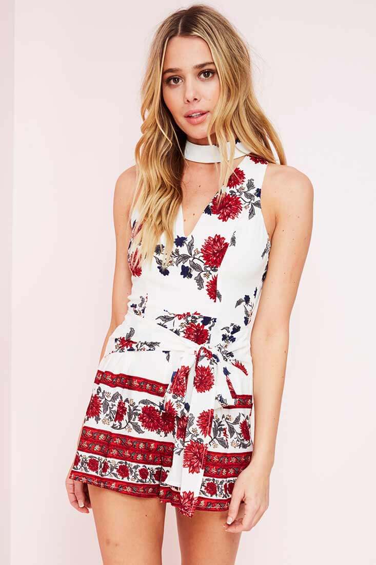 Cassidy Casual Romper Floral Red